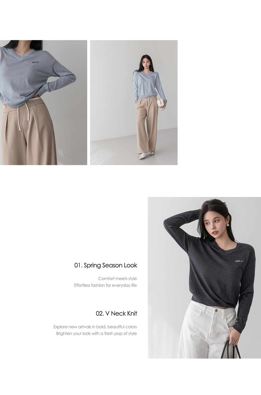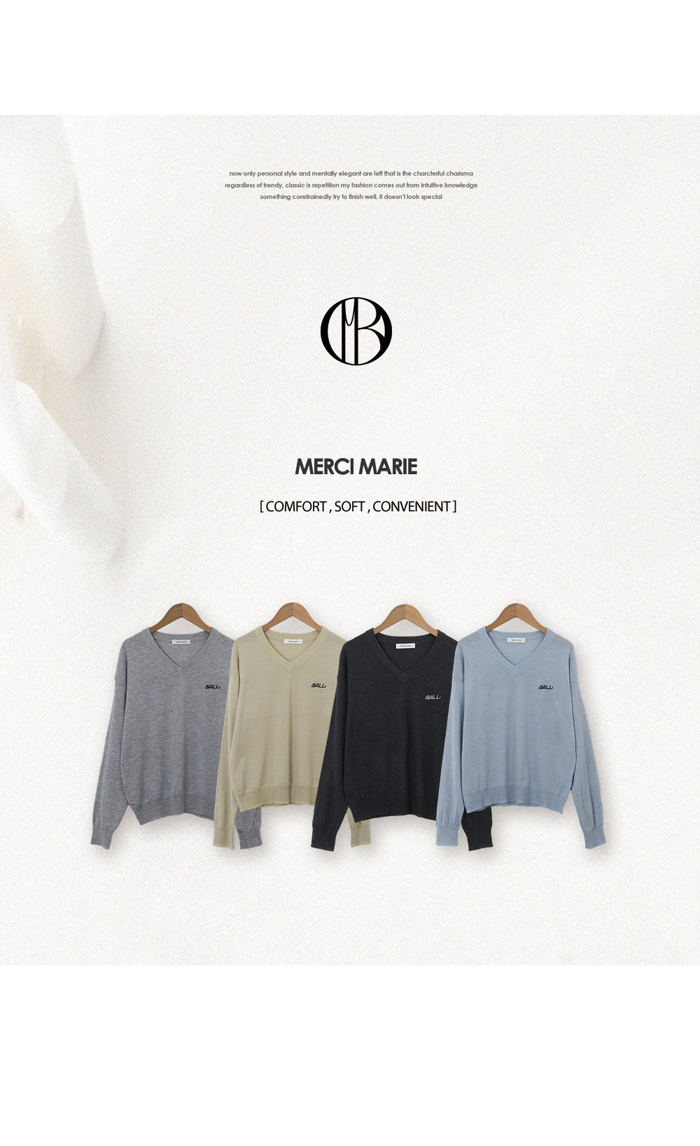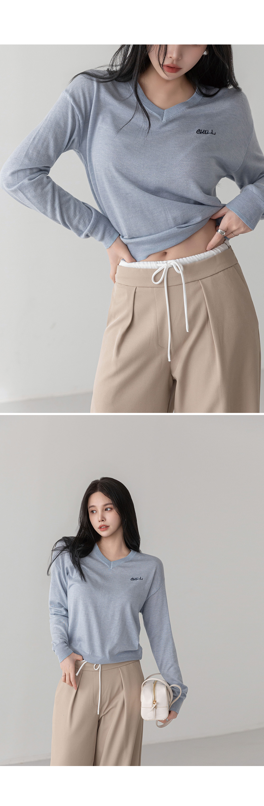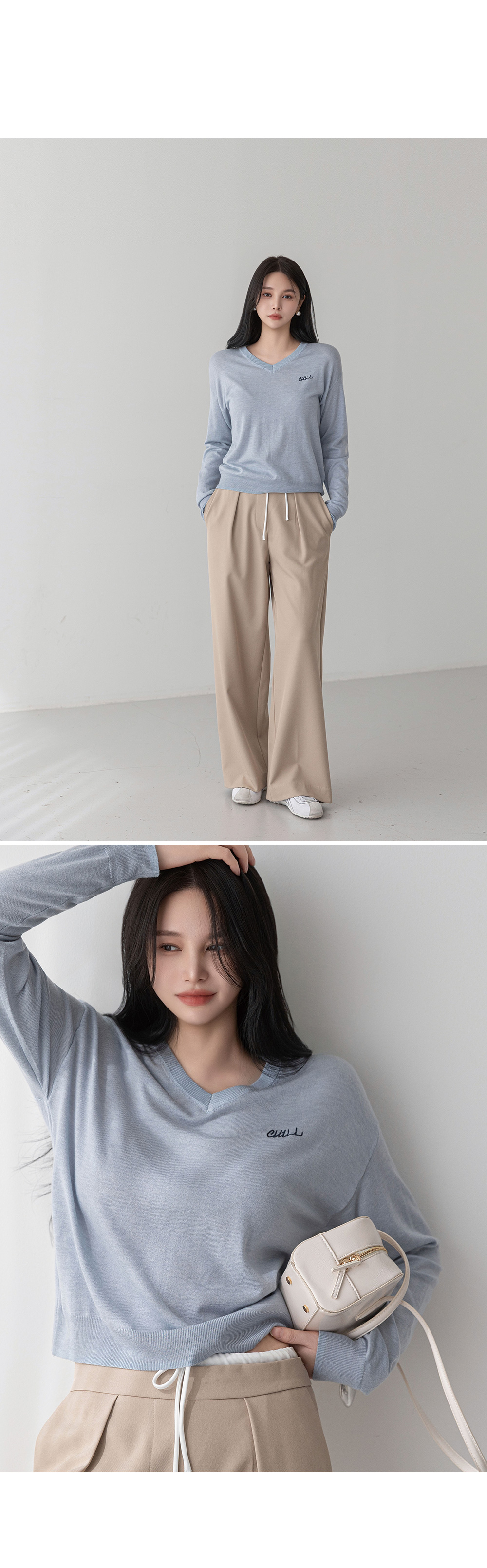 - 적당한 깊이의 브이넥, 스탠다드 핏으로 깔끔한 실루엣