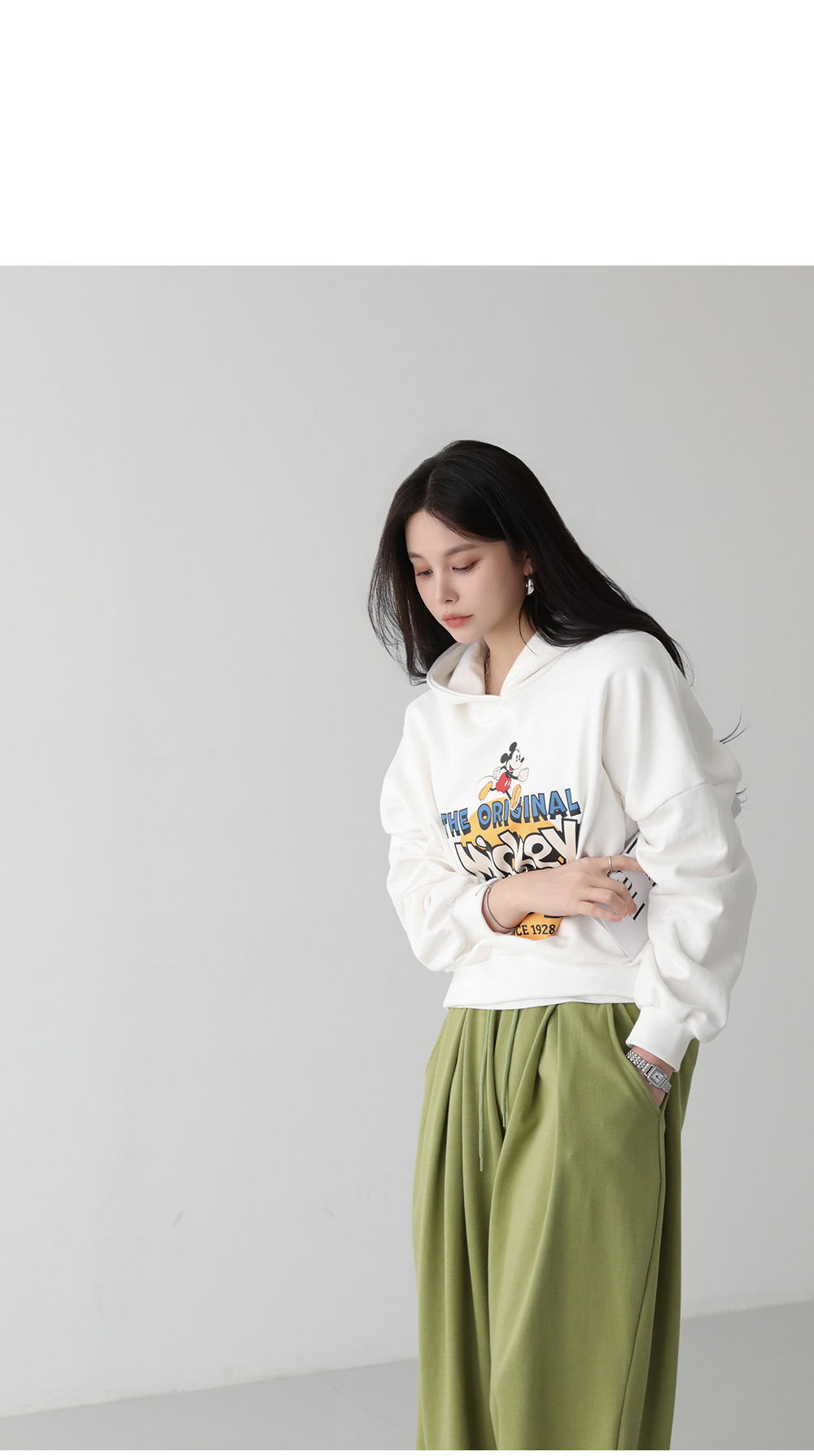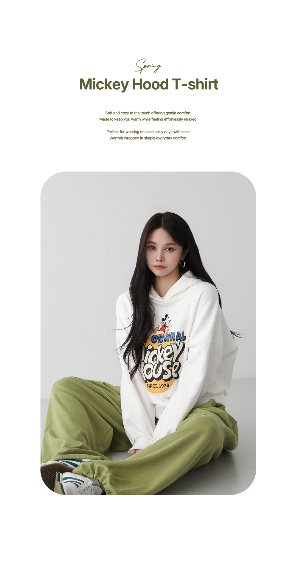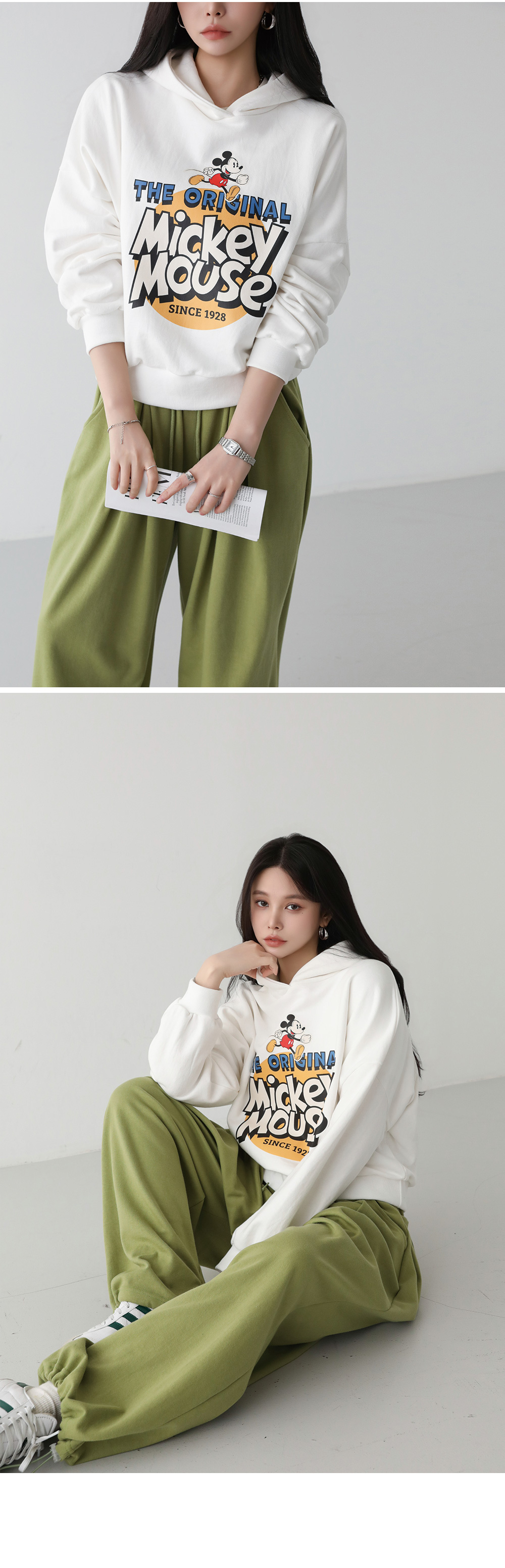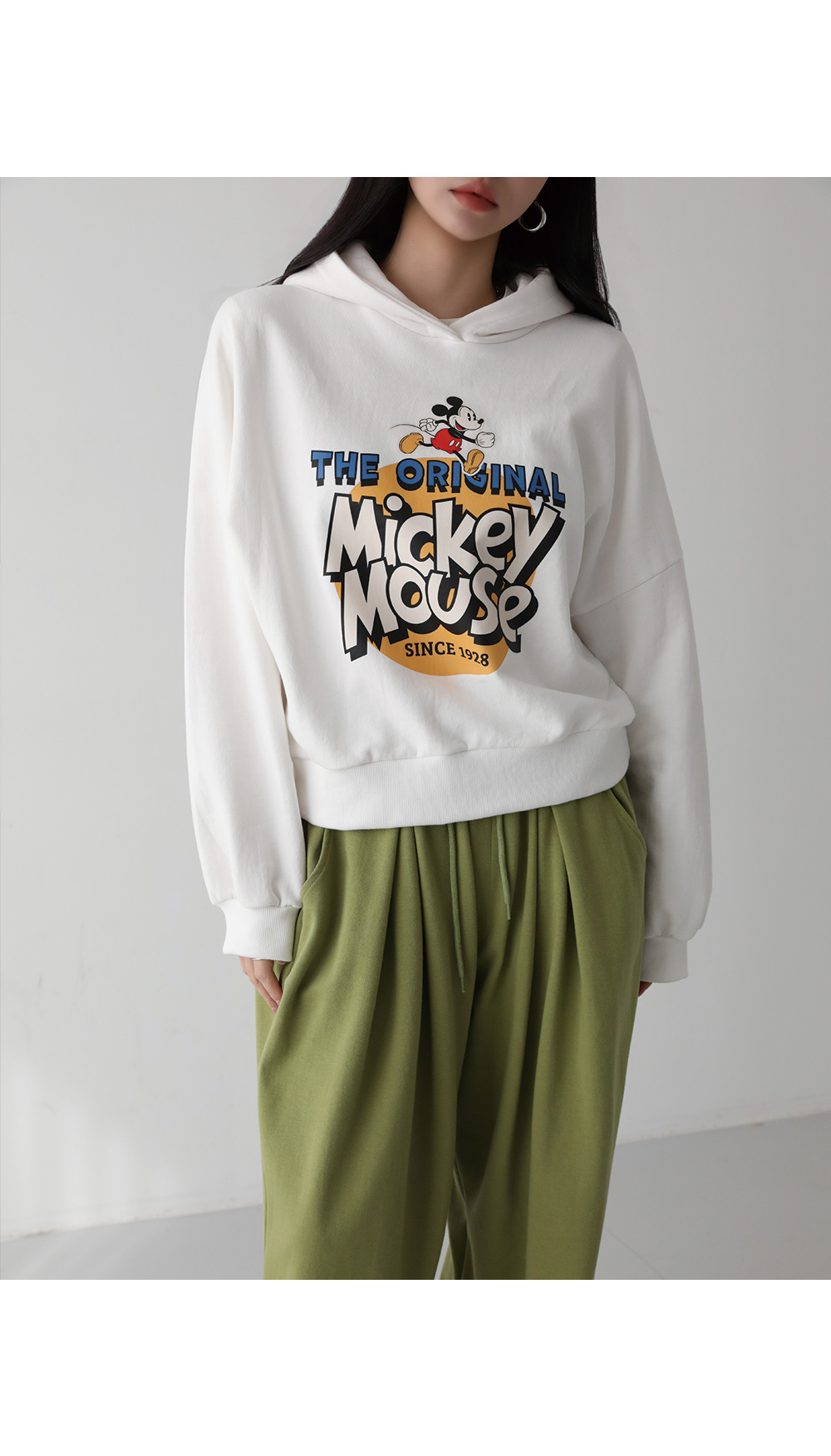- 넉넉한 박시핏 스타일의 미키 후드티