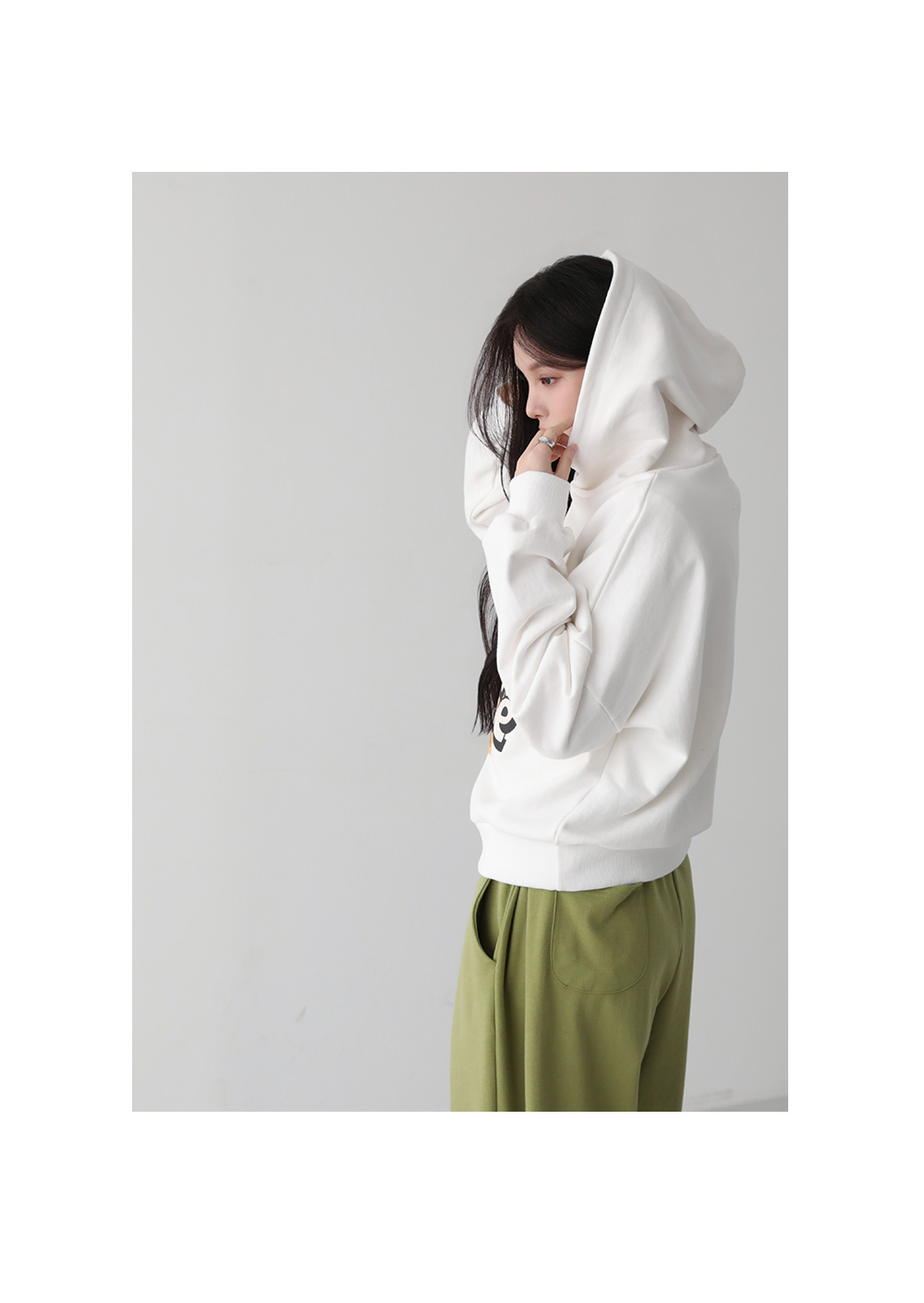큼지막한 후드 디테일로 귀여운 무드 연출