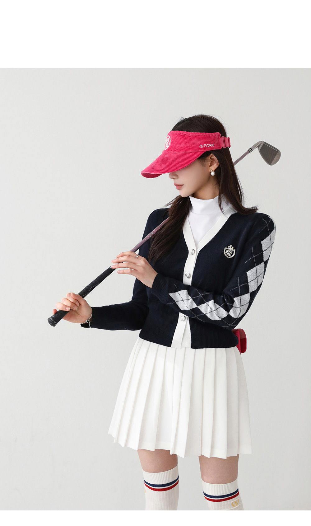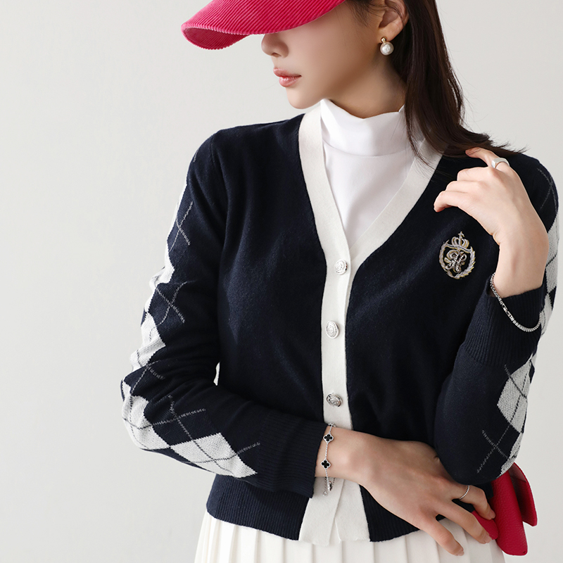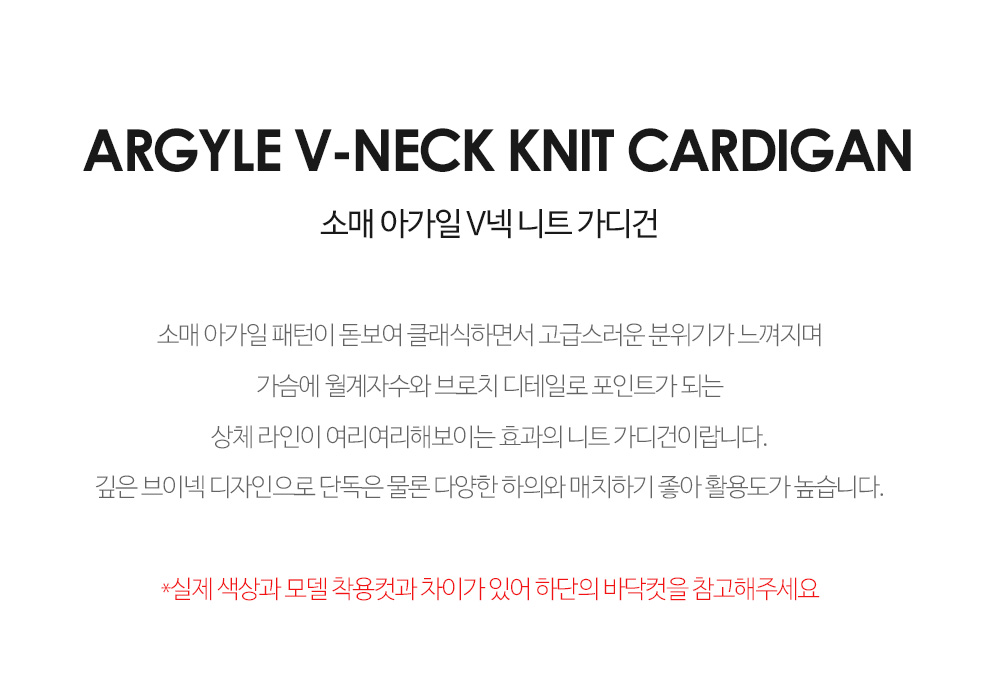 - 소매 아가일 패턴이 돋보이는 고급스러운 스타일의 니트 가디건