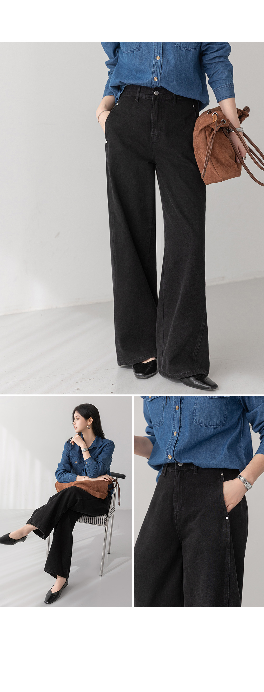 - 힙 부분 다트 디테일로 여유핏을 유지