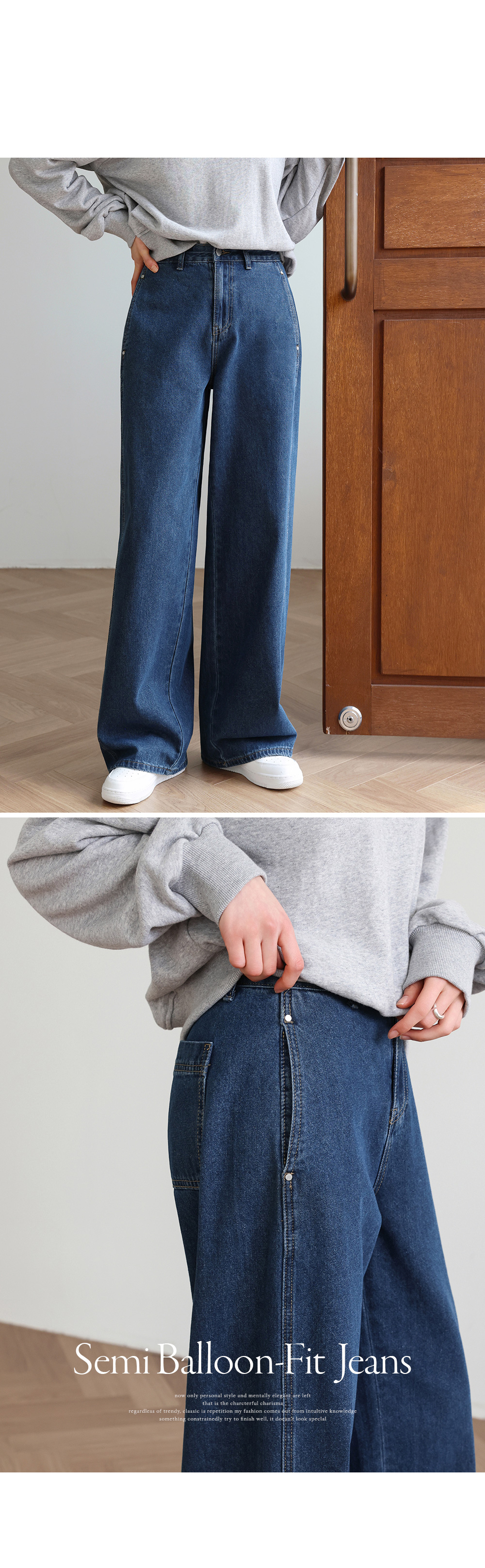 - 부드러운 촉감과 4계절 적합한 두께의 원단으로써 세미 벌룬핏의 팬츠