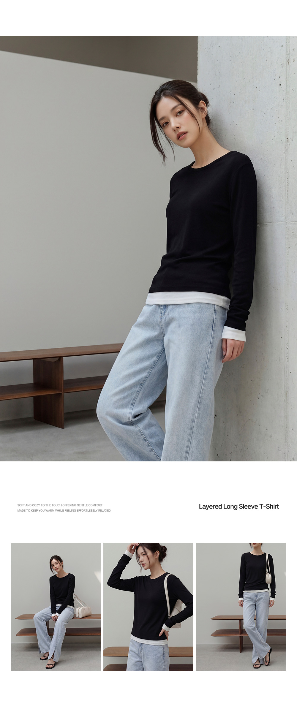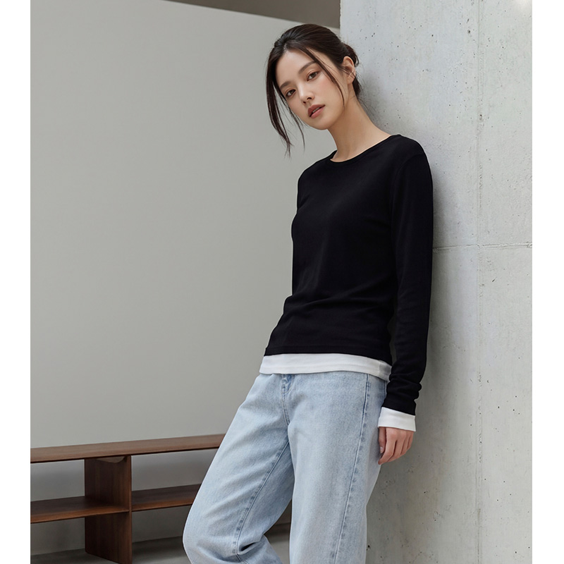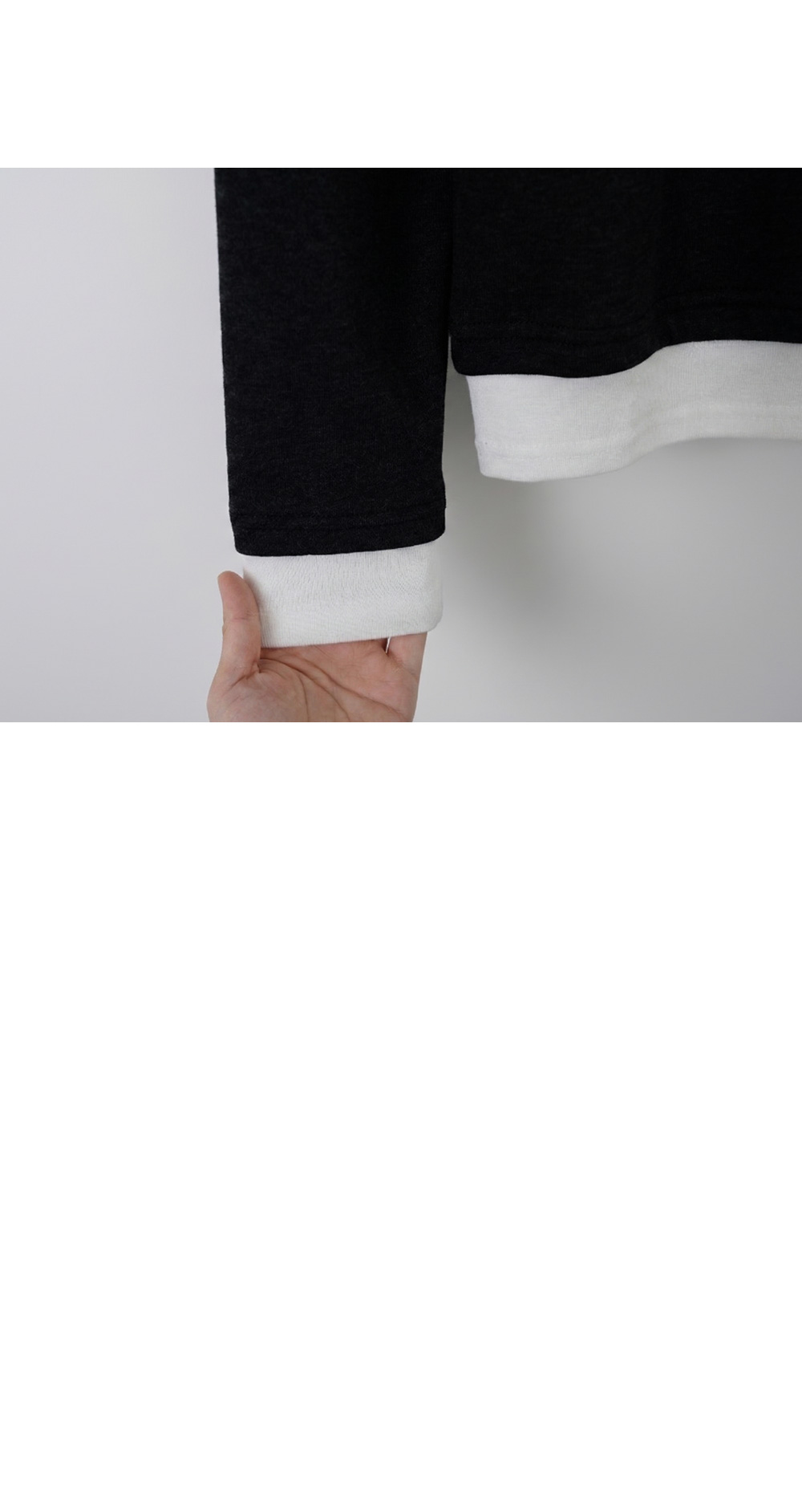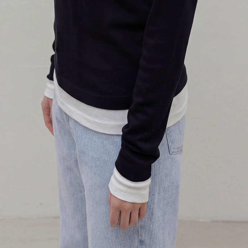 - 밑단과 소매 부분에 배색 디테일을 더해 단독착용만으로도 레이어드한 효과