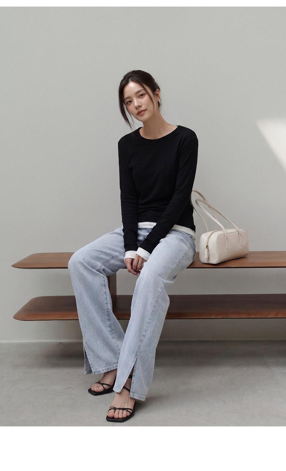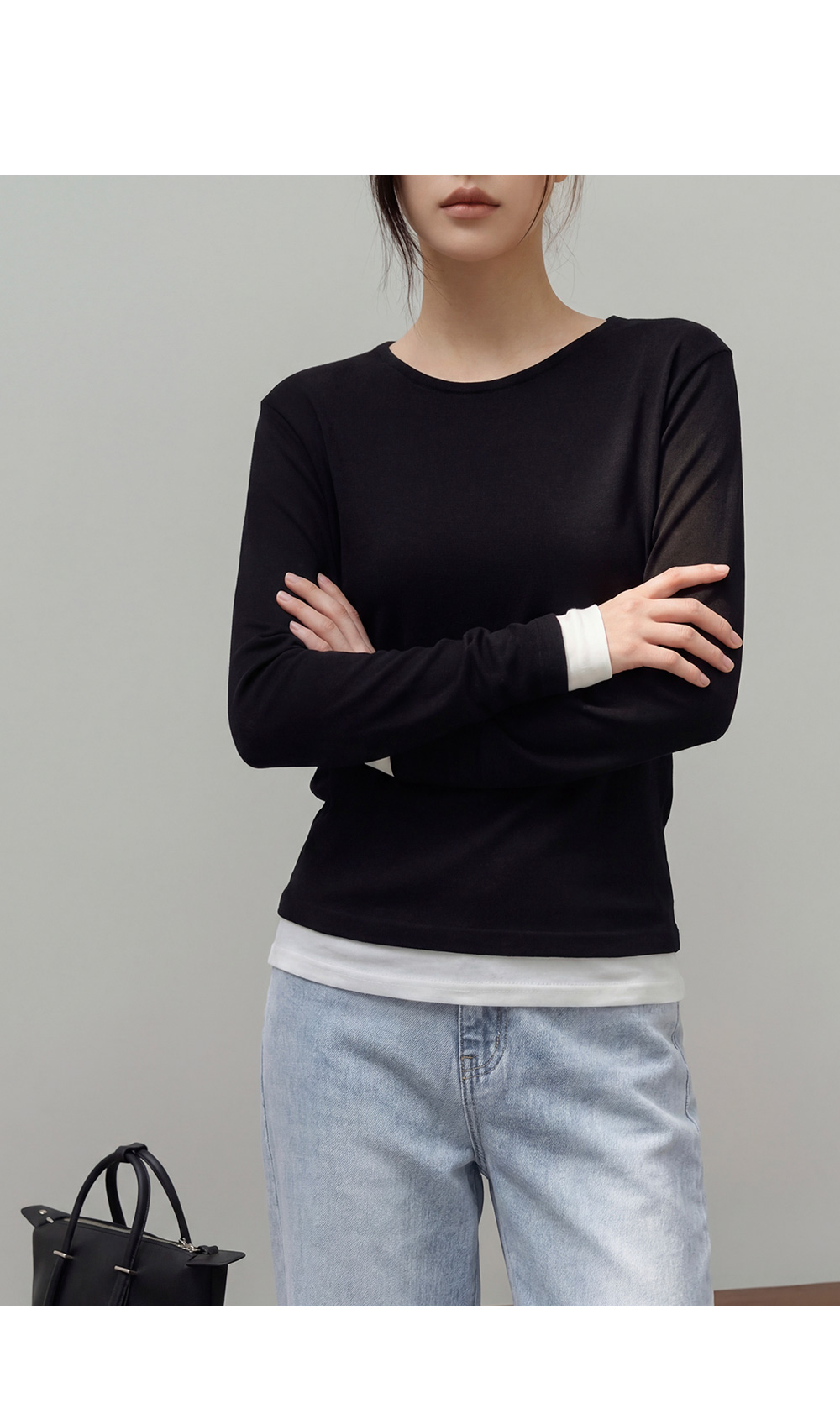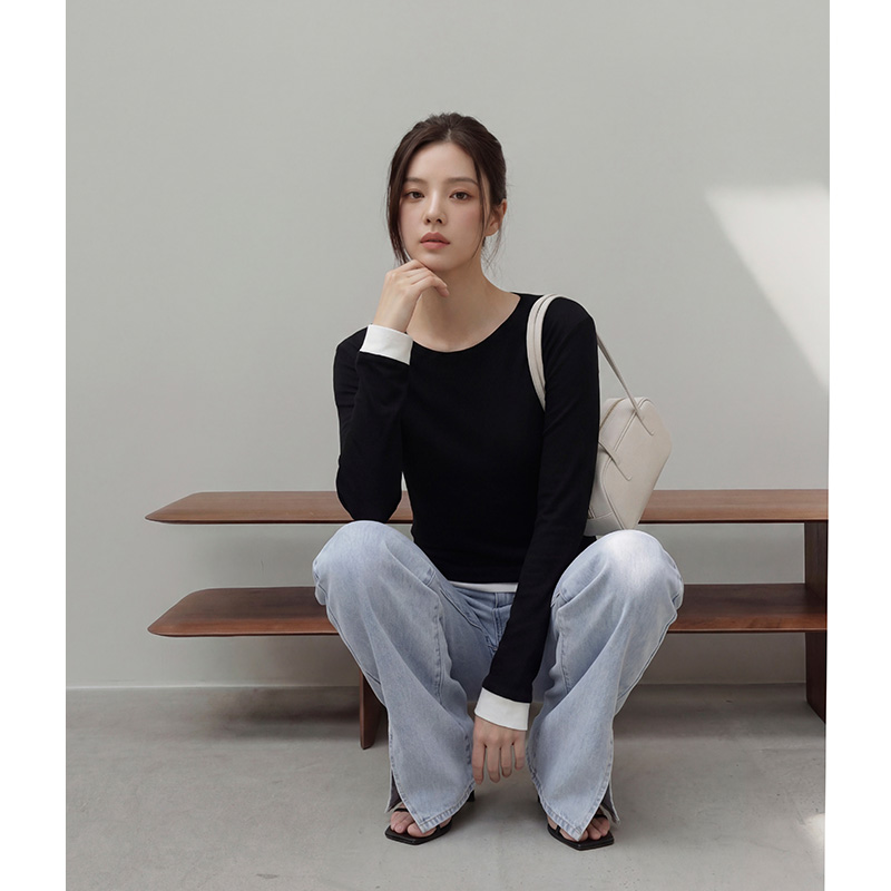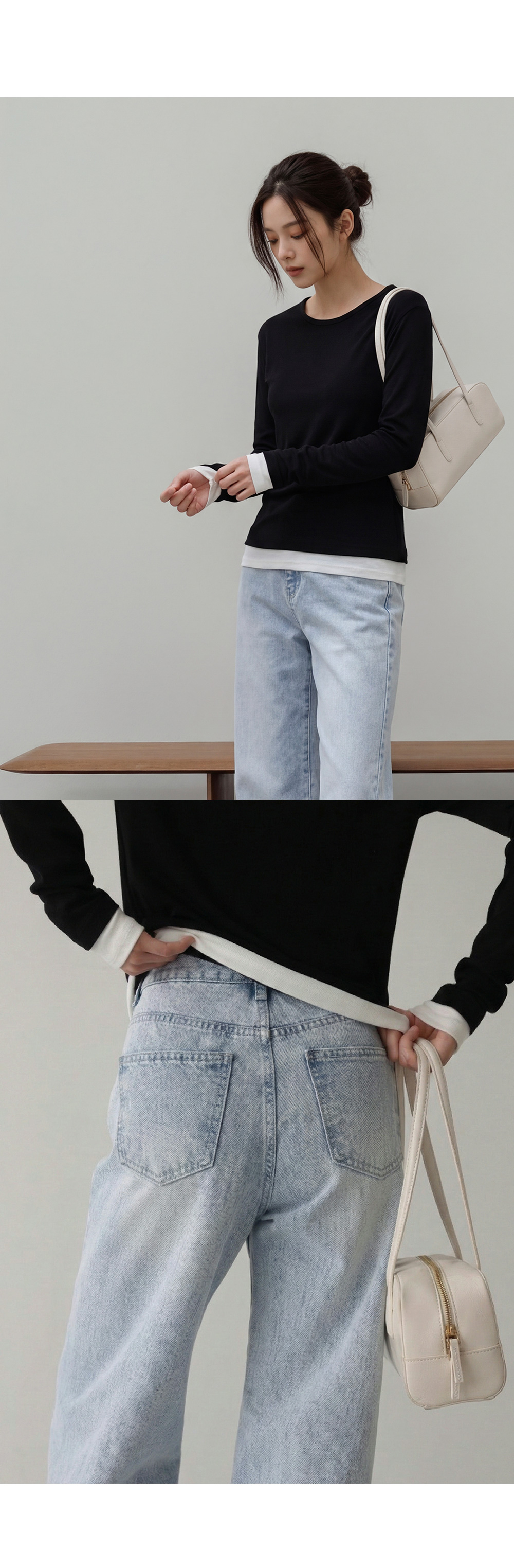 - 밑단과 소매 부분에 배색 디테일을 더해 단독착용만으로도 레이어드한 효과