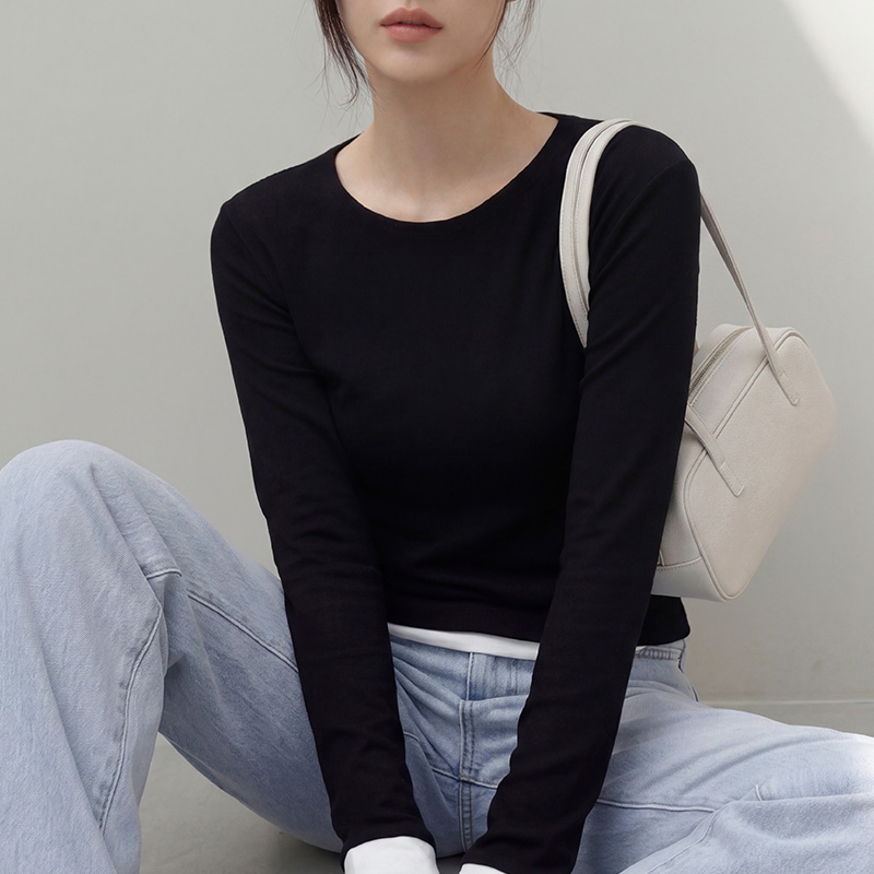 - 깔끔한 라운드 넥에 군더더기 없는 디자인으로 베이직하게 활용하기 좋은 아이템